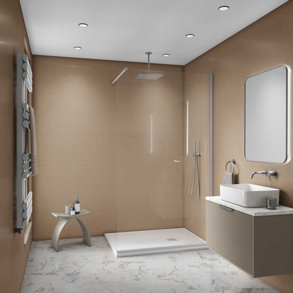 The Decorwall Contempo Tile Lucca Panel provides a modern, cool-toned tile aesthetic that is sophisticated and versatile for contemporary wet rooms. These 8mm thick PVC panels incorporate a light Lucca pattern and a defined V-Groove joint, creating the clean, structured look of tiling without the necessary grouting. The 100% waterproof, hygienic surface is a low-maintenance, robust choice for any bathroom, shower enclosure, or modern kitchen splashback.