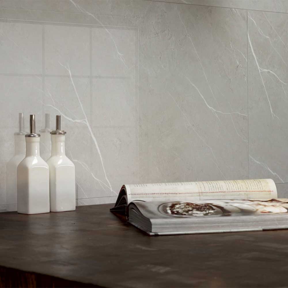 The **Dumawall Plus Mirandela High Gloss Tile** offers a clean, bright, and sophisticated aesthetic with a subtle, gentle pattern that enhances light reflection. Constructed with a solid PVC core, these panels deliver superior durability and impact resistance, making them an excellent, robust tiling alternative for high-end residential and commercial interiors. The grout-free, click-fit system ensures a fast, clean installation, providing a fully hygienic and low-maintenance waterproof wall covering.
