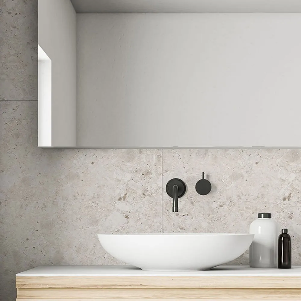 The **Dumawall Inspiro Glow Tile Wall Panel** introduces a warm, light-toned tile and marble aesthetic with subtle veining, perfect for creating an inviting wet room. These 8mm thick PVC panels utilise a flush tongue-and-groove system for fast installation, resulting in a seamless, grout-free wall surface. Its 100% waterproof construction makes it an ideal, hygienic, and durable alternative for high-moisture environments like bathrooms, shower enclosures, and kitchens.