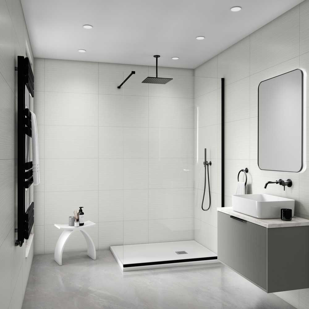 - Wide Panel Format (900mm): Ideal for maximizing coverage (2.43 sq m) in large shower cubicles and reducing the visual distraction of multiple joint lines.